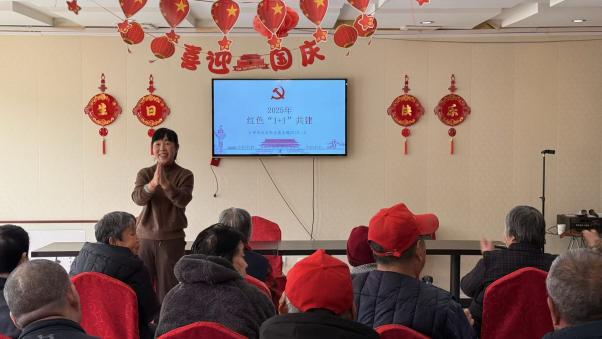 活动聚焦红色传承与敬老关怀,通过多元形式精准满足老人实际需求,为老人们带来兼具意义与温度的重阳体验。活动中,两支部联合组织回顾历史座谈会,邀请颐养院支部党员代表分享入党50余年不忘初心、为人民服务的感人事迹,讲述参与9・3阅兵的激动心情。同步开展红歌联唱,共同唱响《歌唱祖国》《没有共产党就没有新中国》等经典歌曲,激发现场爱国情怀,让每一位参与者都感受到了新时代力量。