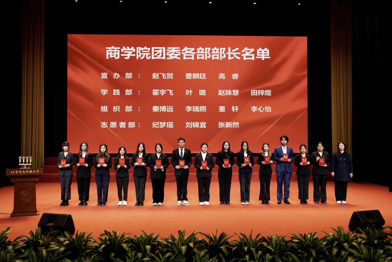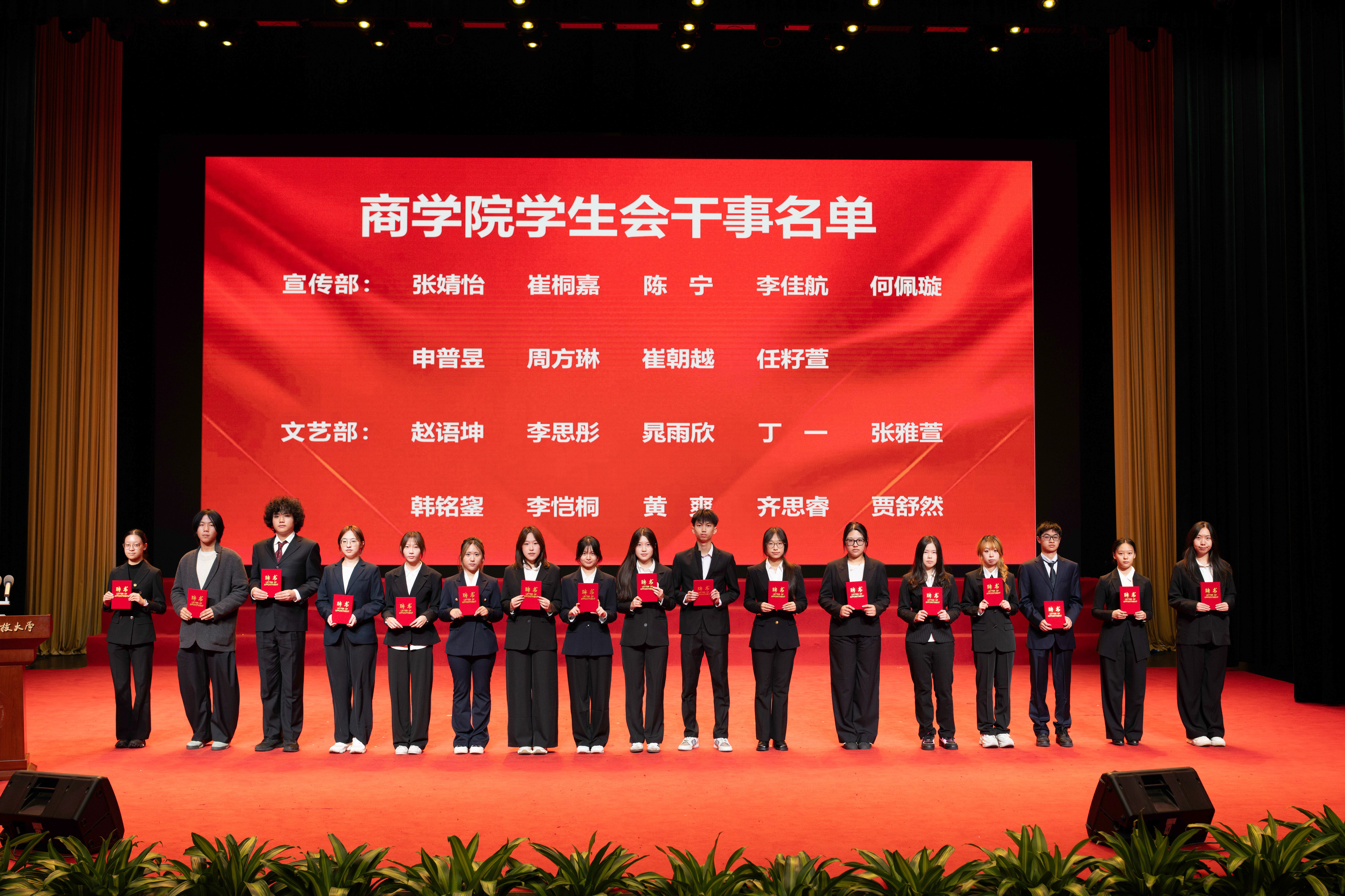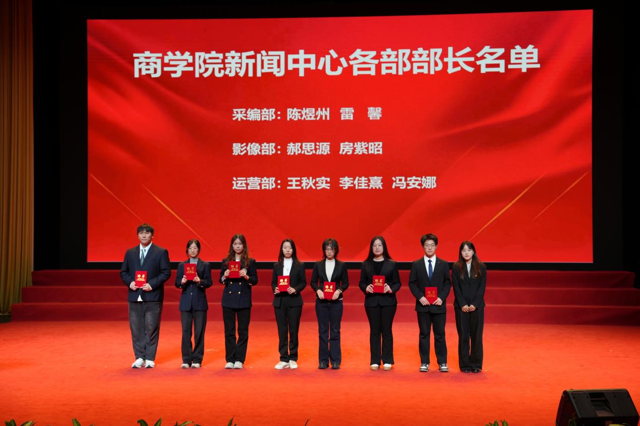一纸聘书,承载的是信任,更是责任;一次交接,延续的是使命,也是征程。崔凯书记宣读新一届团委、研究生会、学生会、新闻中心主席团名单并颁发聘书;随后,费衍慧老师、王玉荣老师、谭毅轩老师、高豪宇老师分别宣读各组织新一届部长团名单并颁发聘书。魏一、张卓文、赵晔姗、王曼祺同学依次宣读干事名单并进行聘书颁发。