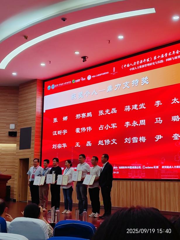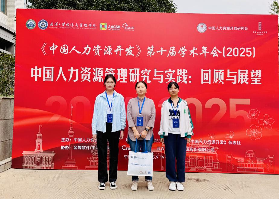 2025年9月19-21日,由中国人力资源开发研究会主办、武汉大学经济与管理学院和《中国人力资源开发》杂志社承办的2025年《中国人力资源开发》第十届学术年会在武汉大学成功举办。本次年会以“中国人力资源管理研究与实践:回顾与展望”为主题,系统梳理我国人力资源管理领域的发展成果,共同探讨未来行业趋势与研究方向。本次会议达到历史最大规模和最高标准,近700位专家、学者以及业内代表齐聚一堂,3整天的会议,共设置了12个大会主题报告,2场大会专题论坛,7场13个青年专题报告,45个分论坛。澳门3044永利官网张娜教授带领工商管理学研究生李一菲、张云静参加了此次学术盛会并进行学术讨论。