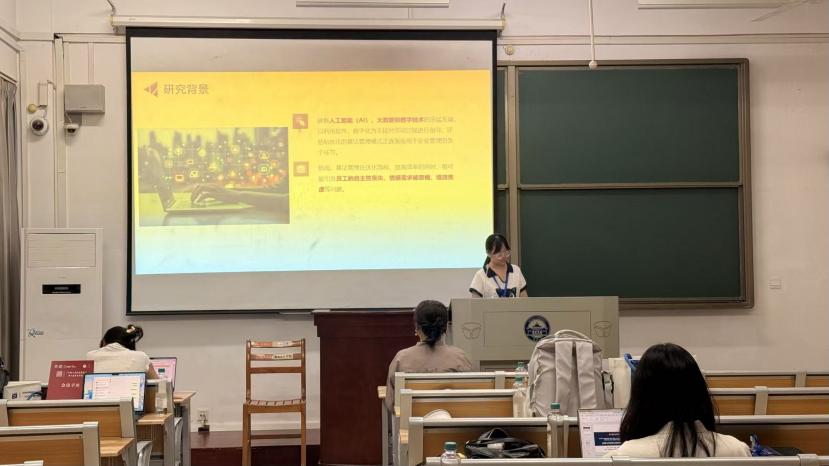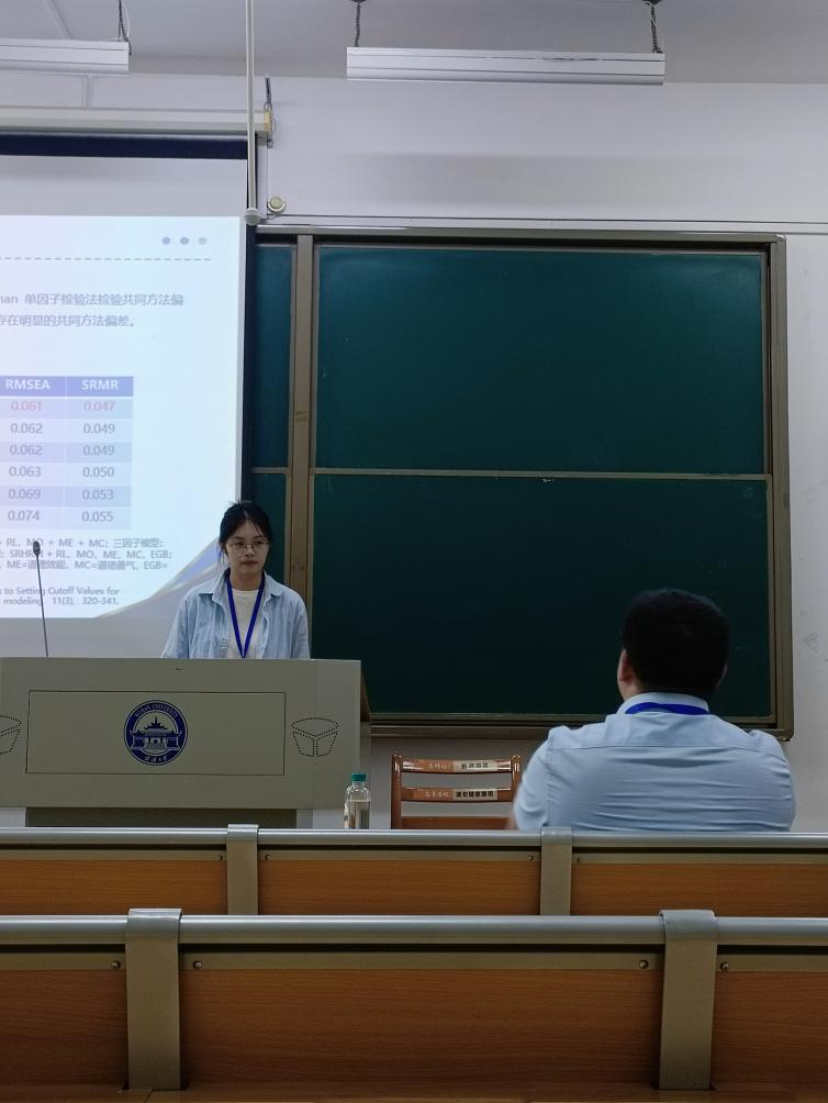 同一时刻,工商管理学2024级研究生李一菲在“分论坛九:社会与环境责任”上做了题目为《道德视角下社会责任型人力资源管理对员工绿色行为的影响研究》的学术论文汇报。该论坛聚焦社会与环境责任融入企业运营的关键路径,重点探讨人力资源管理在培育员工社会责任意识、促进绿色工作方式中的作用与实践方法。