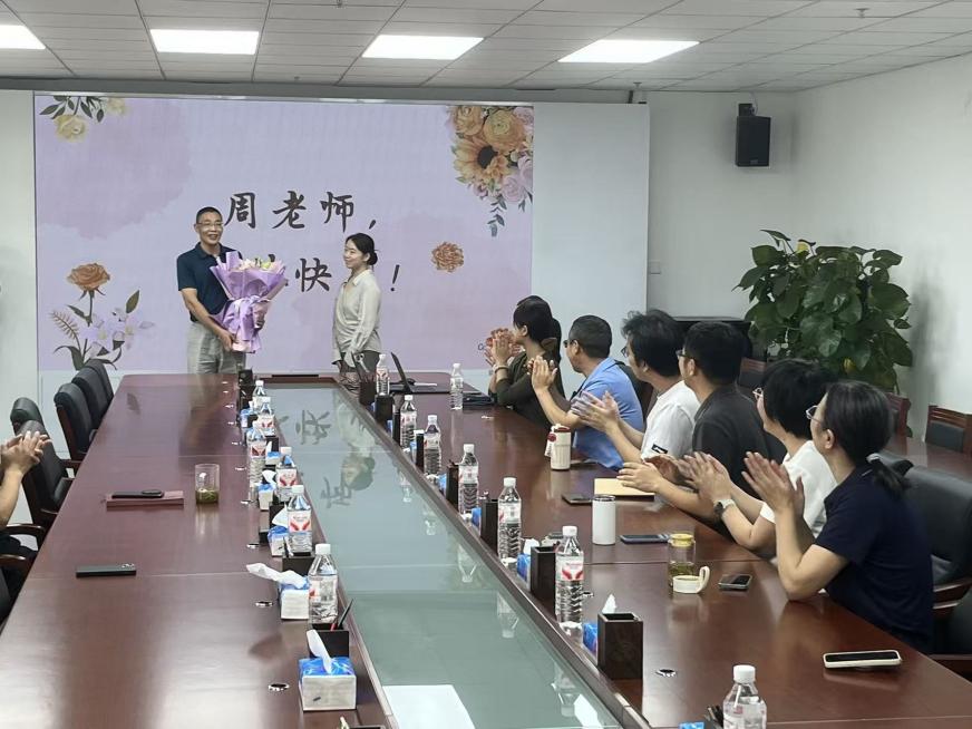 现场还播放了已毕业学生的祝福视频,他们感念师恩,深情回忆受教点滴。随后,青年教师代表张天硕向周老师献花致敬。仪式在温馨的合影中圆满结束。