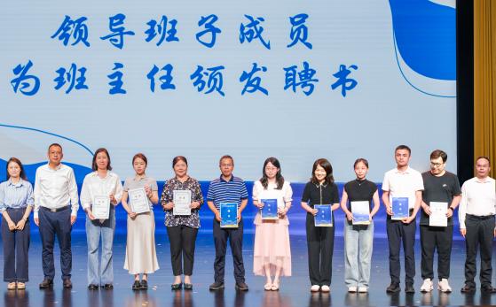 学院领导班子为新生班主任和班主任助理颁发聘书。一直以来,澳门3044永利官网高度重视新生入学教育工作,暑期精心选聘了一批优秀教师担任新生班主任,选拔优秀学生党员、班干部等担任班主任助理,旨在为新生提供全方位的指导与服务,确保新生工作有序、高效开展。