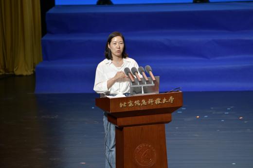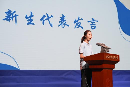 新生代表竹铭峤在发言中表达了对祖国的无限热爱和对大学生活的美好憧憬。她表示,将勤奋学习专业知识,全面提升自身综合素质,努力成为有理想、有道德、有文化、有纪律的新时代青年。